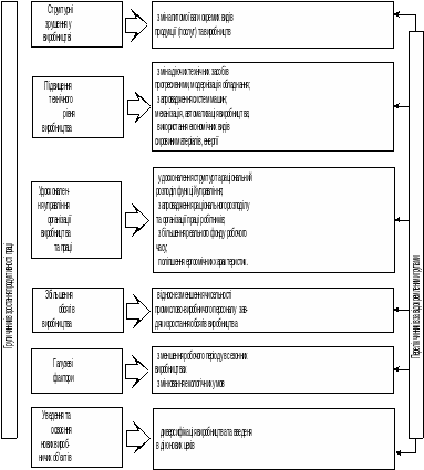2) організаційні, обумовлені організацією виробництва, праці і керування;