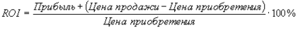 Коэффициент рентабельности инвестиций (Return On Investment, ROI) - финансовый показатель, характеризующий доходность инвестиционных вложений. ROI представляет собой обобщенную формулу анализа прибыльности произвольных инвестиций в активы. Он рассчитывается следующим образом:
