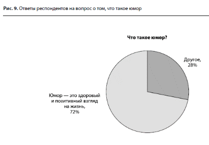 Одним из самых трудных решений касательно структуры исследования было то, просить ли участников дать определение юмора, и если да, то как. Сначала это казалось неосуществимым, однако впоследствии было решено предложить свое определение юмора в исследовании: юмор — это способность здраво и позитивно смотреть на жизнь. Респондентам было предложено дать собственное определение юмора или выбрать сформулированное авторами исследования. Как видно из рис. 9, большинство участников выбрали авторское определение.