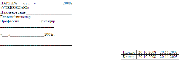 Наряд является единственны документом, который определяет производственное задание бригаде с описанием состава заданной работы и условий ее производства . Наряд определяет также: