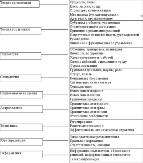 Юридическая наука изучает право как систему социальных норм и различные аспекты правоприменительной деятельности. Непосредственное влияние на формирование ключевых разделов теории организации оказывают такие отрасли юридической науки, как гражданское, трудовое и хозяйственное право. Это же относится и к административному праву, регулирующему общественные отношения, возникающие в процессе организации государственного управления и осуществления исполнительно- распорядительной деятельности. Особо можно выделить корпоративное право – совокупность юридических норм, регулирующих правовой статус, порядок создания и деятельности хозяйственных обществ и товариществ. В организационной деятельности исключительно велика роль системы правил, устанавливаемых собственником или администрацией предприятия и регулирующих различные внутрифирменные отношения. Совокупность социальных регуляторов, облекаемая в соответствующую законодательную форму и обеспечивающая юридическую регламентацию общественных отношений, создает необходимые предпосылки для эффективного функционирования организаций.