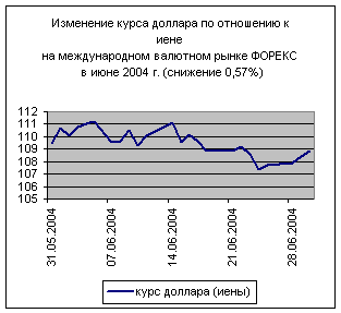 Таким образом, в Японию продолжается приток капитала, вызванный надеждой на экономический рост и увеличение цены акций японских корпораций. В мае это в полной степени проявилось на рынке акций японских компаний, цены которых росли намного быстрее, чем цены акций в США и Европе. Значение фондового индекса "Никкей" в июне возросло на 5,54%.