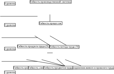 Первый структурный уровень представлен гибкостью средств труда, предметов труда, «живого» труда и гибкостью технологии соединения «живого» и прошлого труда и отражает гибкость элементарного состава производительных сил производственной системы.
