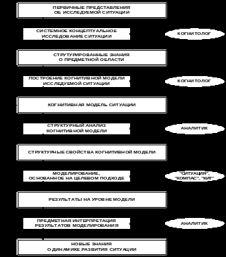 В основе технологии когнитивного анализа и моделирования (рисунок 1) лежит когнитивная (познавательно-целевая) структуризация знаний об объекте и внешней для него среды.