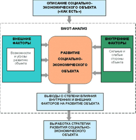 Он включает анализ сильных и слабых сторон развития исследуемого объекта в их взаимодействии с угрозами и возможностями и позволяет определить актуальные проблемные области, узкие места, шансы и опасности, с учетом факторов внешней среды.