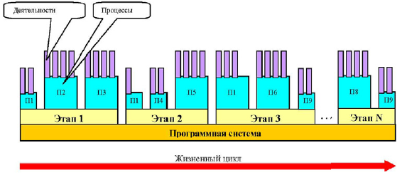 Жизненный цикл программной системы состоит из ряда этапов, на которых программная система планируется, создается, внедряется, эксплуатируется, сопровождается и списывается.