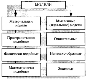По способу отображения или аппарату построения различают два вида моделей (рис. 2): материальные и мысленные, или идеальные.
