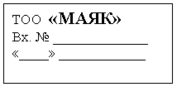 Отметка о поступлении располагается в правом нижнем углу документа и включает: регистрационный номер письма и дату его получения. Для проставления отметки о поступлении может использоваться специальный регистрационный штамп, включающий; наименование организации, место даты получения и место для регистрационного номера. (рис.1)