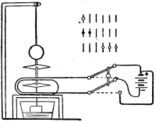 Действовал он следующим образом. Сигналы передавались при помощи шести мультипликаторов – шести пар магнитных стрелок, вращающихся в горизонтальной плоскости (рис. 1). В каждой паре одна стрелка вращалась внутри витков, а вторая – над витками проводника, по которому подавался сигнал. В верхней части подвесов были закреплены диски, одна сторона которых была белой, а другая – черной.