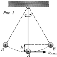 где кинетическая энергия маятника полностью восстанавливается, лежат на разной высоте над поверхностью Земли. Еще Гюйгенс выяснил, что высота h подъема маятника до точки В пропорциональна квадрату его скорости v2макс в нижней точке А. Лейбниц оценивал величину скрытой (потенциальной) энергии в точках В по массе m груза маятника и высоте h его подъема при колебаниях. Точные измерения максимальной скорости vмакс и высоты h показывают, что всегда выполняется равенство: