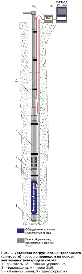 Поставленные задачи наиболее успешно решены созданием установок погружных центробежных насосов с приводами на основе вентильных электродвигателей (рис. 1).