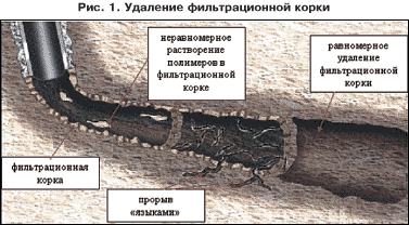 Фильтрационные корки, образованные специальными промывочными жидкостями для вскрытия продуктивных пластов, обычно являются тонким и практически непроницаемым барьером между НКТ и продуктивным пластом. Таким образом, это ограничивает эффективность добычи нефти (нагнетания воды) из скважины.