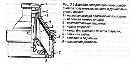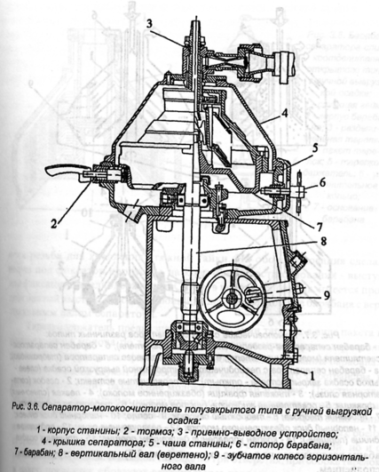 В полузакрытых подача молока осуществляется открытым способом, а отвод продуктов – закрытым, под напором, создаваемым барабаном сепаратора. Производительность 0,5-1,0 кг/с.