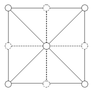 Рис. 2. Сетка 3х3. Пунктирные линии и вершины необязательны для LOD ммеша.