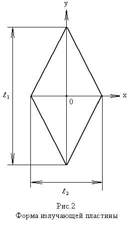 Для обеспечения малой величины бокового максимума (10%) выбираем излучающую пластину в форме плоского ромба, характеристика направленности которого выражается формулой