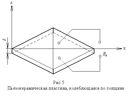 керамическая поршневая пластина не нагружена накладками (рис.5). Боковые размеры пластины велики по сравнению с ее толщиной. Электроды наложены на большие грани, перпендикулярные оси z.
