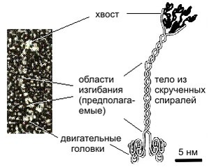 Другой не менее известный биологический мотор, который тоже будет полезен нанотехнологам, - молекула белка кинезина. Это представитель другого класса линейных моторов. Среди механохимических преобразователей энергии, распространенных в живой природе, они играют важную роль. Эти белковые машины движутся вдоль полимерных нитей, используя в качестве "топлива" молекулы АТФ. К таким моторам относятся белки актомиозинового комплекса, входящего в состав сократительного аппарата мышц. Движение микроворсинок (жгутиков и ресничек бактерий и простейших) определяется взаимодействием другой пары моторных белков - динеина и тубулина. Смещение головок динеина относительно тубулиновых микротрубочек белков обеспечивает волнообразные движения микроворсинок. Среди большого числа моторных белков миозин скелетных мышц и кинезин из клеток мозга являются наиболее изученными молекулярными моторами. Несмотря на то, что функции миозина и кинезина в клетке различаются, они удивительно похожи по своему строению и механизмам действия.
