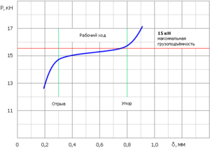 Рис. 2. Зависимость грузоподъемности магнитного подшипника P от величины зазора δ