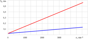 Рис. 5. Зависимость потерь на токи Фуко Tf от частоты вращения n