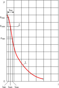 Существуют и магнитные опоры, работающие на принципе отталкивания. Таким необходимы, в принципе, только радиальные фиксирующие подшипники, так как в осевом направлении деталь «вывешивается» сама на соответствующей высоте. Однако, ввиду того, что обычно деталь не оставляют в таком незакрепленном состоянии, здесь также необходима фиксация в осевом направлении. На графике рис.1 кривая 1 характеризует силу Р существующей магнитной опоры притяжения или отталкивания, действующую вдоль вертикальной оси в зависимости от зазора между магнитами l.