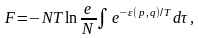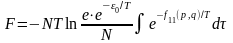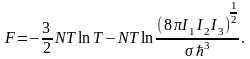 и T в показателе подынтегрального выражения сократится. Преобразование же дифференциалов этих переменных, входящих в d, даст множитель Tl/2, который выносится за знак интеграла. Интегрирование по колебательным координатам q производится по той области их значений, которая соответствует колебаниям атомов внутри молекулы. Поскольку, однако, подынтегральная функция быстро уменьшается с увеличением q, то интегрирование можно распространить на всю область от - до +, как и для всех импульсов. Сделанная нами замена переменных не изменит тогда пределов интегрирования, и весь интеграл будет некоторой не зависящей от температуры постоянной. Учитывая также, что интегрирование по координатам центра инерции молекулы дает занимаемый газом объем V, получим в результате для свободной энергии выражение вида