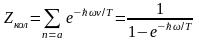 Вычисление колебательной статистической суммы Zкол производится элементарно. Вследствие очень быстрой сходимости ряда суммирование можно формально распространить до =. Условимся отсчитывать энергию молекулы от наиболее низкого ( = 0) колебательного уровня, т. е. включаем ħ/2 в постоянную 0 в