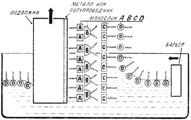 А что может дать подключение вольтметра к монослою? Оказывается, тогда можно следить за изменением электрических характеристик молекулы при воздействии внешних факторов. Например, освещение монослоя иногда сопровождается заметным перераспределением заряда в каждой молекуле, поглотившей квант света. Это эффект так называемого внутримолекулярного переноса заряда. Квант света как бы перемещает электрон вдоль молекулы, а это наводит во внешней цепи электрический ток. Вольтметр, таким образом, регистрирует внутримолекулярный электронный фотопроцесс. Внутримолекулярное перемещение зарядов можно вызвать и путем изменения температуры. При этом изменяется суммарный электрический дипольный момент монослоя, и во внешней цепи регистрируется так называемый пироэлектрический ток. Подчеркнем, что ни одно из описанных явлений не наблюдается в пленках с хаотическим распределением молекул по ориентациям.