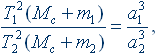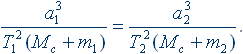 т.е. квадраты сидерических периодов планет (Т21 и Т21), умноженные на сумму масс Солнца и планеты (Мс+m1 и Мс+m2), относятся как кубы больших полуосей орбит планет (а31 и а31). Формула (5) может быть представлена в виде: