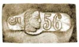 Так, на рис.5, изображено поддельное клеймо по типу рис.1, с совершенно неудавшейся уродливой головкой. Еще хуже подделка на рис.6, по типу рис.3; в наляпанном кусочке рельефного металла в левой части штампа трудно даже уловить какое-либо сходство с человеческою головой. Тем не менее, подобные подделки часто и легко сбываются в продаже, благодаря тому, что рисунки пунсонов редко кому известны, и рассмотреть их можно только в лупу.