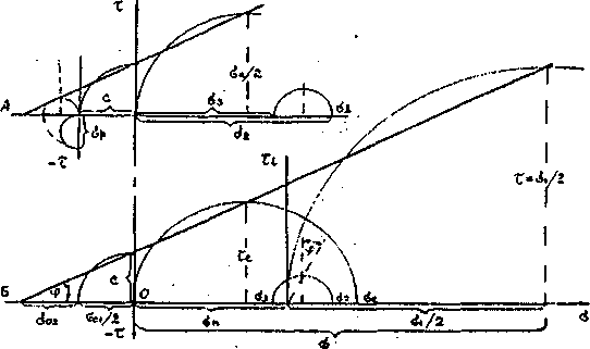 ) построение кругов напряжений и предельной линии сдвига ведется по схеме рис. 1.Б., когда значения