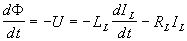 где Ф есть полный магнитный поток, заключённый между лайнером и катушкой (в электродинамике магнитный поток определяется как число силовых линий магнитного поля, пересекающих некоторый замкнутый контур, поэтому величина Ф соответствует сумме всех магнитных потоков для каждого витка катушки, участвующих в процессе сжатия), LC(t) есть самоиндукция катушки и IC есть ток в катушке.
