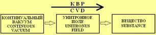 По генетической взаимосвязи континуальный вакуум, конвергирующее поле (унитронное поле) и вещество можно расположить в такой последовательности: вакуум - конвергирующее поле - вещество. Процесс, приводящий к рождению вещества, идет в направлении, показанном на (рис. 6).