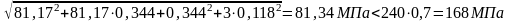 | Напряжения в поясе σ, МПа | 81,3 | 159,2 | 143 | 116 | 89,6 | 65,3 | 40,4 | 15,2 |