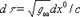 В общей теории относительности пространство-время не плоское, а искривленное. В искривленном пространстве-времени (в конечных, не малых, областях) уже нельзя ввести декартовы координаты, и использование криволинейных координат становится неизбежным. В конечных областях такого искривленного пространства-времени ds2 записывается в криволинейных координатах в общем виде (8). Зная gik как функции четырёх координат, можно определить все геометрические свойства пространства-времени. Говорят, что величины gik определяют метрику пространства-времени, а совокупность всех gik называют метрическим тензором. С помощью gik вычисляются темп течения времени в разных точках системы отсчёта и расстояния между точками в трёхмерном пространстве. Так, формула для вычисления бесконечно малого интервала времени dt по часам, покоящимся в системе отсчёта, имеет вид: