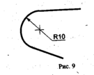 ля обозначения радиуса перед размерным числом всегда наносят знак R - латинская прописная буква (см. рис. 4). Стрелку наносят с одной стороны (см. рис. 9)