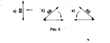 Размерные числа линейных размеров наносят в соответствии с положением размерных линий, как показано на рис. 6. Если размерная линия вертикальная, то размерное число ставят справа (рис. 6а). На наклонных размерных линиях цифры пишут так, чтобы они оказались в удобном для чтения положении, если дать размерной линии "упасть" в горизонтальное положение, как это указано стрелками на рис. 6 а, б, в.