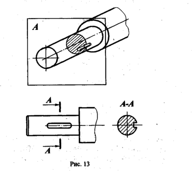 Чтобы показать поперечную форму деталей, пользуются изображениями, называемыми сечениями (рис. 13). Для того, чтобы получить сечение, деталь мысленно рассекают воображаемой секущей плоскостью в том месте, где нужно выявить её форму. Фигура, полученная в результате рассечения детали секущей плоскостью, изображается на чертеже. Следовательно сечением называется изображение фигуры, получающейся при мысленном рассечении предмета плоскостью или несколькими плоскостями.