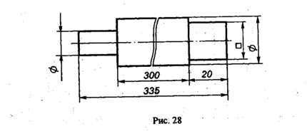 4. Чтобы сделать короче изображение длинной детали, не меняя масштаба, применяют разрыв, используя для этого сплошные волнистые линии. Размерную линию при этом не разрывают (рис. 28).