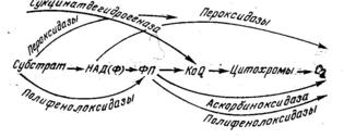 Полифенолоксидазы и аскорбиноксидаза принимают участие в окислительных процессах на заключительном этапе дыхания, заменяя цитохромы.