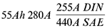 Несмотря на то, что после емкости стоит значение 280А, цифра, интересующая нас и показывающая ток холодного старта по принятому у нас стандарту DIN равна 255А.