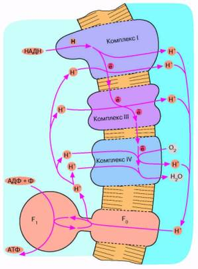 Побочным продуктом фотосинтеза у цианобактерии и растений служит молекулярный кислород. Нарастание его концентрации в атмосфере привело к появлению ферментов, убирающих этот сильный окислитель, опасный для жизнедеятельности. Вероятно, первой функцией ферментов, восстанавливающих О, до Н2О, было снижение внутриклеточной концентрации кислорода. Однако в дальнейшем аэробная клетка научилась извлекать пользу из этого процесса, создав дыхательную цепь электронного транспорта, сопряженного с откачкой ионов Н+.