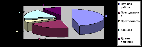 На основе анализа мотивации поступления в аспирантуру можно заключить, что подавляющее большинство опрошенных привело в аспирантуру желание заниматься в будущем научной либо преподовательской работой. Вместе с тем примерно 30% опрошенных обосновали своё решение поступить в аспирантуру более прозаическими соображениями, в том числе такими, как: «с кандидатским дипломом легче устроиться на работу», «просто престижно учиться в аспирантуре», «нужна отсрочка от службы в армии» и т. п.