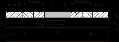(2–15 мкм), выращенный на высокоомной подложке 1. Омические катодные и анодные контакты расположены на расстоянии