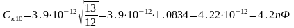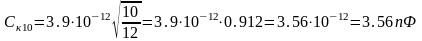 Найдем значение коллекторной емкости в рабочей точке по той же формуле перехода: