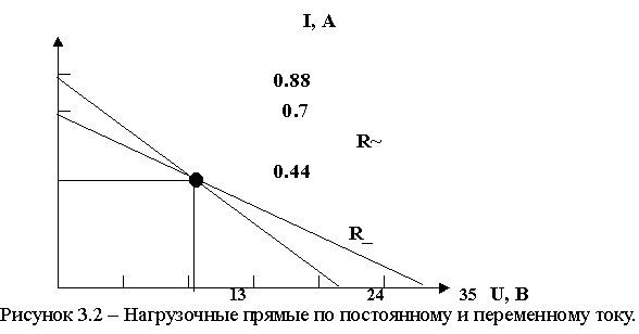 Нагрузочные прямые по постоянному и переменному току приведены на рис.3.2.