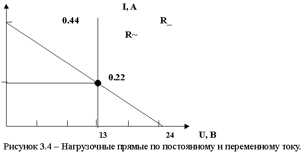 Видно, что напряжение питания значительно уменьшилось. Нагрузочные прямые по постоянному и переменному току приведены на рис. 3.4.