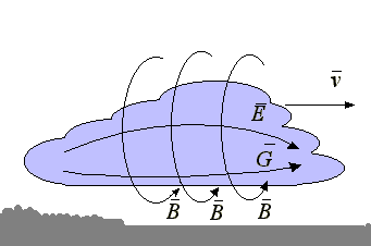 Рис. 3: Электрическое, магнитное и гравитационное поле грозового облака