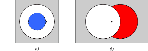 Применение формулы (1) в тех случаях, когда пробное тело находится не на краю полости, а в произвольной точке внутри нее, связано с вычислением сил тяготения, создаваемых шаром, радиус которого равен расстоянию от центра полости до положения пробной массы (см. рис. 10а). Плотность шара принимается равной разности плотности полости и плотности окружающей среды.