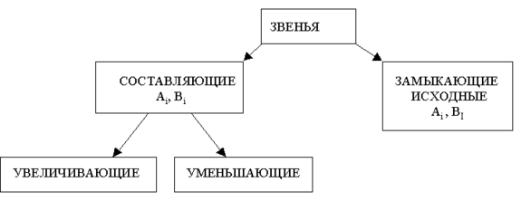 Определим, какие звенья увеличивающие, какие уменьшающие. Для этого построим схему размерной цепи.