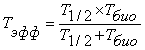 При Tбио = T1/2 выведение нуклида будет с периодом равным 0,5 Tбио или 0,5 T1/2.